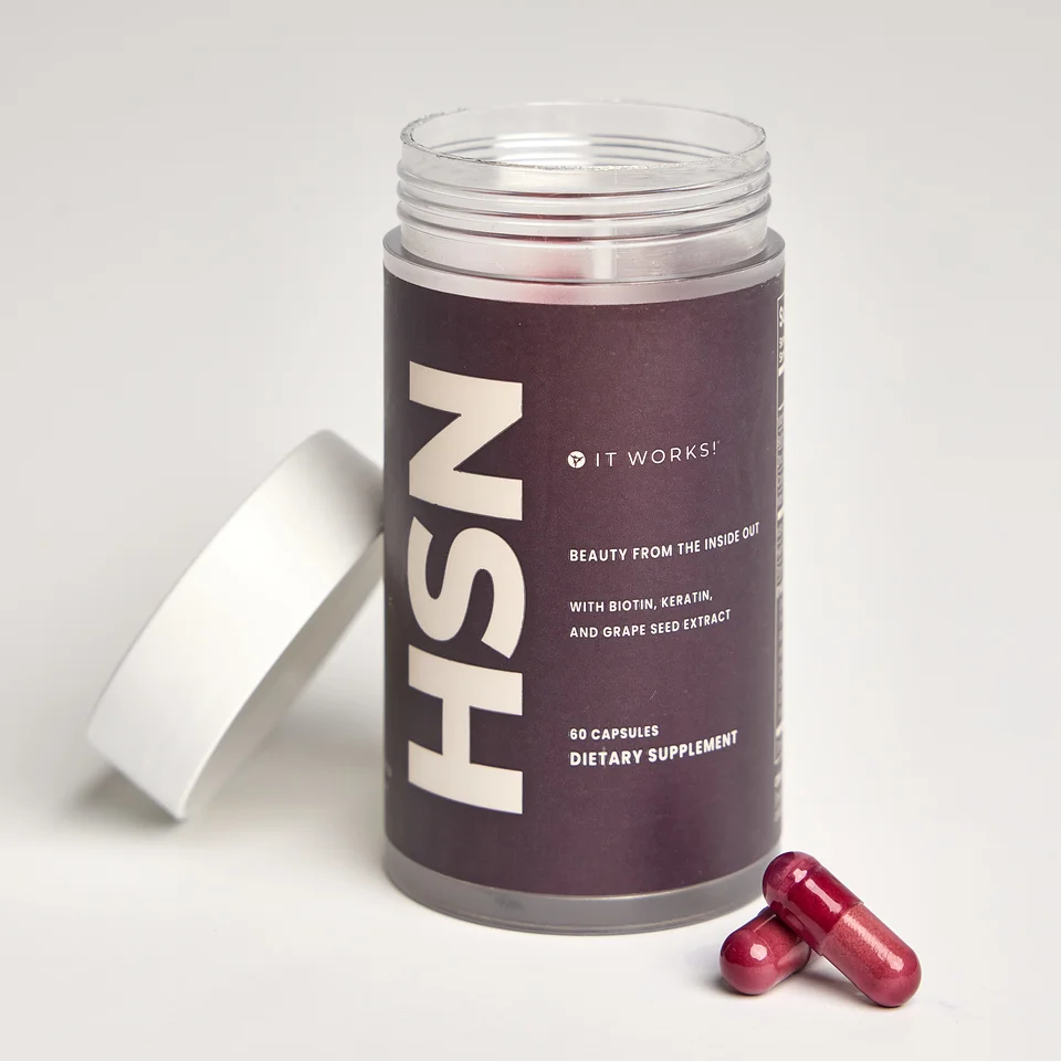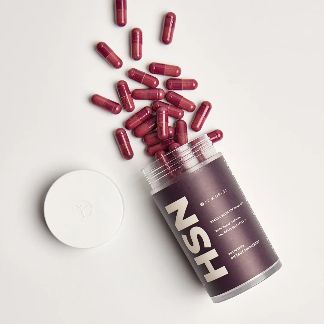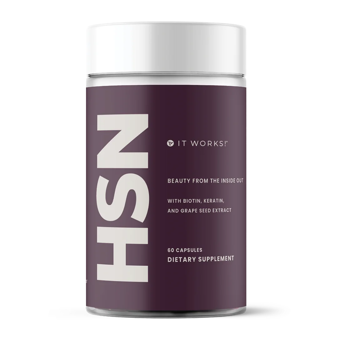 Take two Hair Skin Nails capsules daily with food to nourish your hair, skin, and nails from within. For optimal benefits, pair Hair Skin Nails with the complete It Works! BeautyWorks skincare line.